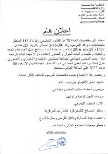 ينهي السيد رئيس المجلس الجماعي لكافة العموم و خصوصا هيئات المجتمع المدني إلى أنه سيتم عقد لقاء أولي تشاركي حول إعداد برنامج عمل جماعة إيملمايس للفترة 2023-2027، وذلك يوم الأربعاء 8 يونيو 2022 على الساعة العاشرة صباحا بقاعة الإجتماعات بمقر الجماعة.